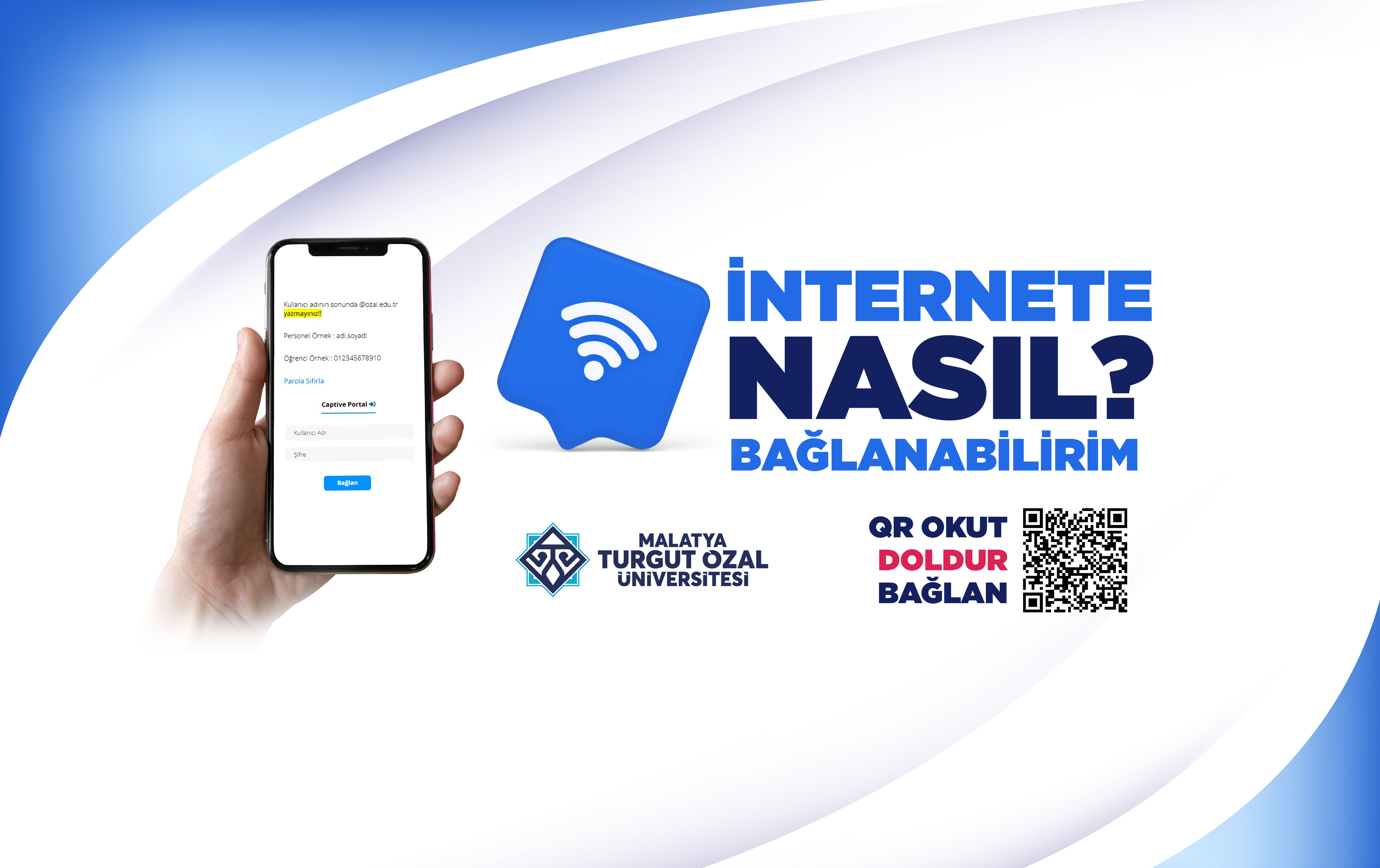 Üniversitemiz bünyesinde internet erişimine ilişkin tüm bilgilendirmeler, bağlantı adımları ve gerekli yönlendirmeler Malatya Turgut Özal Üniversitesi Bilgi İşlem Daire Başkanlığı tarafından hazırlanmış olup, ayrıntılı açıklamalar web sayfamızda paylaşılmıştır.