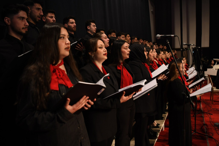 Malatya Turgut Özal University organized a polyphonic choir concert on March 8, International Women's Day. Malatya Turgut Özal University Rector Prof. Dr. Recep Bentli, Vice Rector Prof. Dr. İlhan Erdem, Dean of the Faculty of Art, Design and Architecture Prof. Dr. Ersan Çiftci, academic and administrative staff and students attended the program. Before the event, Faculty of Art, Design and Architecture, Department of Painting faculty members Assoc. Prof. Dr. Döndü Tülay Özkul, Assoc. Prof. Dr. Döndü Tülay Özkul, Dr. Lecturer Selcan Kalın and Dr. Lecturer. Prof. Dr. Recep Bentli, Rector Prof. Dr. Recep Bentli, Vice Rector Prof. Dr. İlhan Erdem, Dean Prof. Dr. Ersan Çiftci, Vice Dean Assoc. Prof. Dr. Ferdi Karaönçel and faculty members opened the painting exhibition consisting of women-themed works prepared by the students of the Department of Painting under the moderation of Prof. Dr. Arif Esen Baykurt. The event was attended by the Director of the Women and Family Studies Application and Research Center Dr. Lecturer Kübra Batar. Prof. Dr. Kübra Batar's opening speech. Touching on the importance of March 8 in her speech, Assoc. Prof. Dr. Batar emphasized the equality of women and men; “Women are the representatives of a unifying power in business life, at home and in society. Celebrating the International Women's Day of all women on March 8, Batar said, “Women are the symbol of compassion, love, tolerance and self-sacrifice.” Following the opening speech, a polyphonic choir concert was performed by Malatya Turgut Özal University Faculty of Art, Design and Architecture, Department of Music. In the concert, which was conducted by Prof. Dr. Elif Sanem Güleç as the choir conductor and Assoc. Prof. Dr. Ferdi Karaönçel as the artistic director, works such as the National Anthem, “Mustafa'm”, “I Loved a Young Woman”, “Çimende Sürü Gazlar”, “Elinde Oya Gidiyor Toya” were performed. The March 8 International Women's Day event ended with a group photo session after the concert.