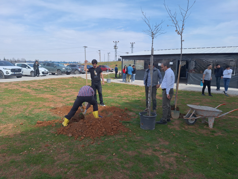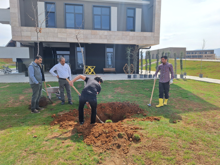 Dean of the Faculty of Art, Design and Architecture Prof. Dr. Ersan Çiftci, Assistant Deans Assoc. Prof. Dr. Ebru Doğan and Assoc. Prof. Dr. Ferdi Karaönçel, Faculty Secretary Eyüp Önler, academic and administrative staff and students planted saplings in the faculty garden in order to contribute to nature. He stated that sapling planting activities will continue in order to raise environmental awareness and increase the natural beauty of the campus.
