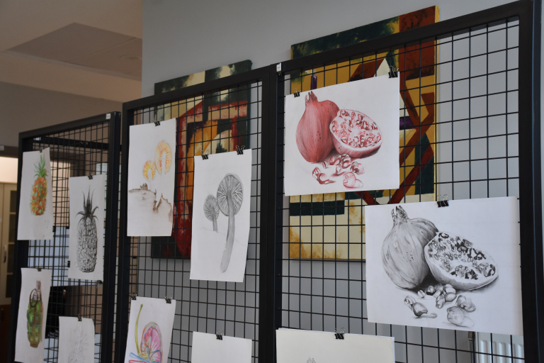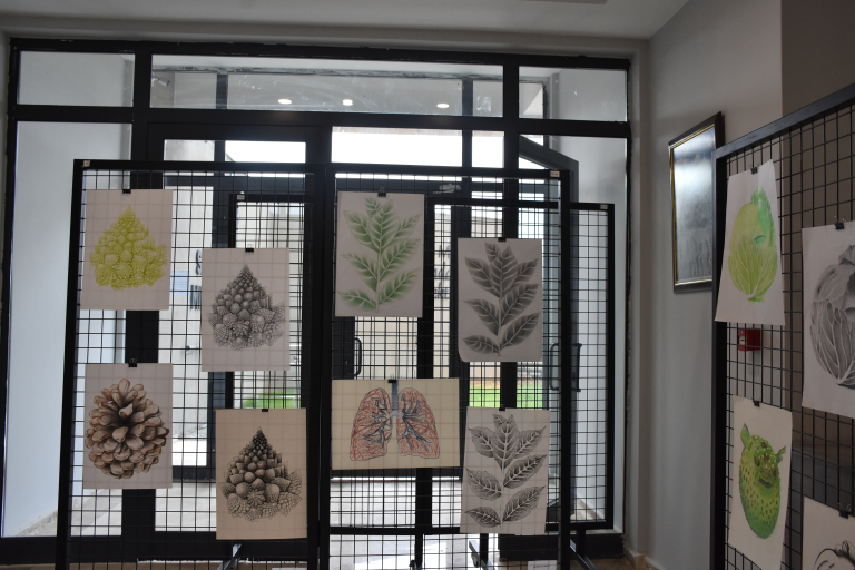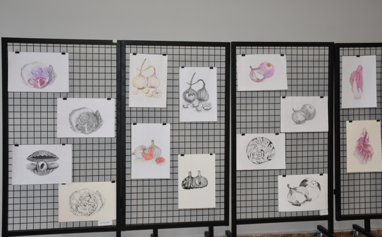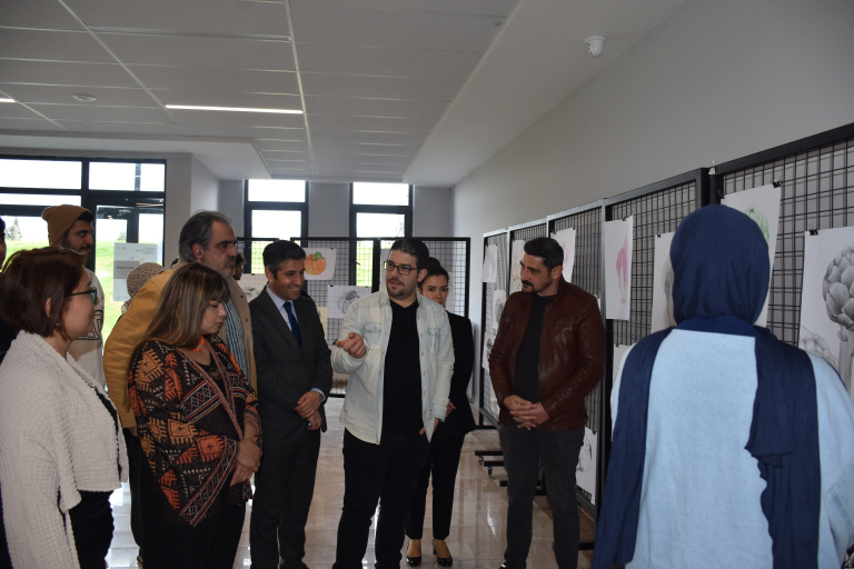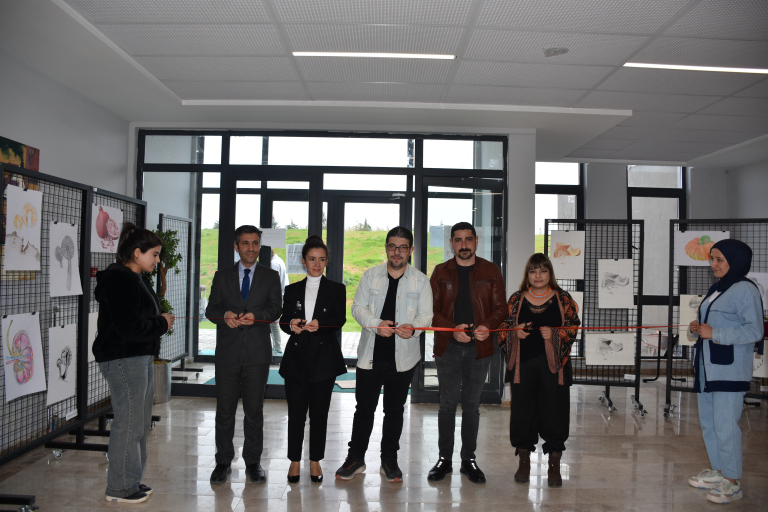 The faculty members and students of the Department of Painting of our faculty organized a meaningful event on Tuesday, April 15, within the scope of World Art Day. A group exhibition consisting of the works produced by first-year students within the scope of the Basic Art Education course throughout the semester was presented to the appreciation of art lovers on the ground floor of the faculty building. STMF Associate Deans Assoc. Prof. Dr. Ebru Doğan and Assoc. Prof. Dr. Ferdi Karaönçel and Faculty Secretary Assoc. Assist. Harun Barış, Department of Painting lecturers Assoc. Prof. Dr. Döndü Tülay Özkul, Assoc. Prof. Dr. Selcan Kalın, Dr. Lecturer. Prof. Dr. Arif Esen Baykurt, Lecturer. Assist. Ahmet Abuzeroğlu, Assoc. Assist. Mustafa Yasin Aydoğan and students attended. In the exhibition where students revealed their creativity, observation skills and abstraction skills; charcoal studies, color experiments, simulation and stylization examples based on organic forms in nature attracted attention. Each student narrated the artwork he created based on a vegetable or fruit and visualized this story with different techniques. Prof. Dr. Lecturer. Prof. Dr. Selcan Kalın summarized the process of the emergence of the works with the following words: "Each of our students realized a metaphorical transformation by simplifying the organic objects in nature that inspired them. The exhibition process was prepared with intense labor and each work is the product of this labor." Giving information about the preparation process of the exhibition, Department of Painting Lect. Assist. Ahmet Abuzeroğlu pointed out that the process was not only a technical training, but also a creative expression and aesthetic discovery experience for the students and said the following: "Our work progressed by creating a story. Each student chose a vegetable or a fruit. We started with these objects and continued with color information, followed by experiments involving texture information with charcoal. Then we went to abstraction. It was an original process in which our students reflected what they saw and how they saw it. The resulting works are extremely successful." This exhibition, which reveals the unifying and transformative power of art, was an important and inspiring experience both in terms of shedding light on the students' artistic journey and offering art lovers the opportunity to discover abstract worlds created based on the forms of nature.