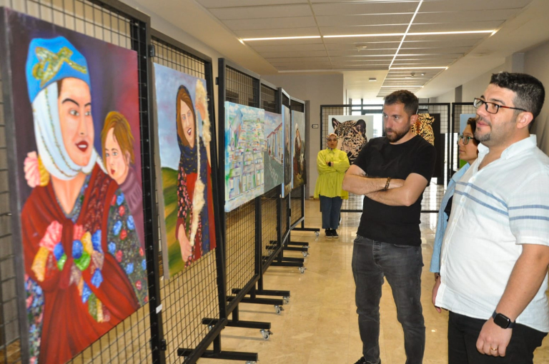 Providing information about the exhibition, Lecturer Mustafa Olçum said, “We worked with our students for two semesters for our end-of-year exhibition. Each student produced work based on a theme they chose individually. The works that emerged were interpretations of traditional elements using contemporary artistic language and oil painting techniques.”