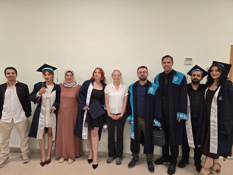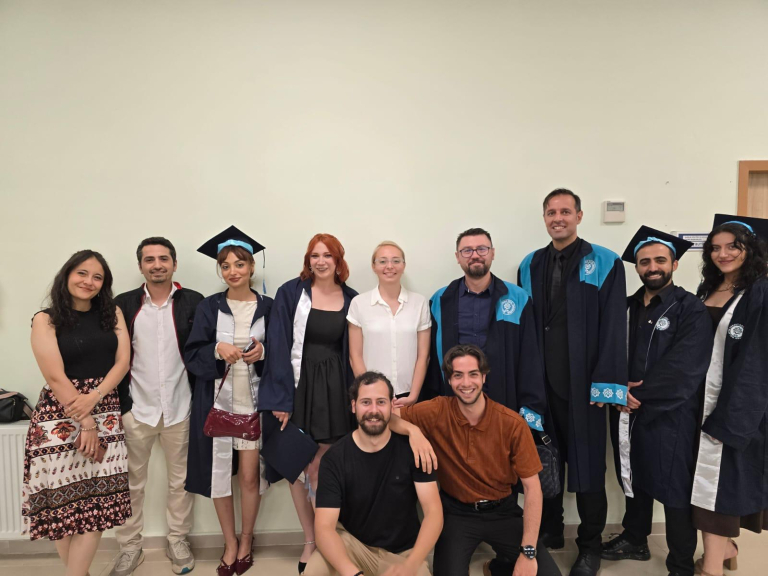 The ceremony, which was also attended by the university administration, was attended by our Faculty Dean Prof. Dr. Ersan Çiftci, Vice Deans Assoc. Prof. Dr. Ebru Doğan and Assoc. Prof. Dr. Ferdi Karaönçel, Faculty Secretary Lecturer Harun Barış, and the faculty's academic staff, who did not leave the students alone. From the Visual Communication Design Department, Assoc. Prof. Dr. Emrah Arğın and Assoc. Prof. Dr. Aydın Karabulut; from the Music Department, Dr. Lecturer Olcay Korkmaz and Research Assistant İrem Polat Açık; Dr. Tuna Taşdemir, Dr. Bilgehan Aycan, Dr. Atakan Aslan, and Research Assistant Sündüz Adilak from the Performing Arts Department; and Dr. Selcan Kalın from the Painting Department attended the ceremony and shared in the excitement of the graduating students.