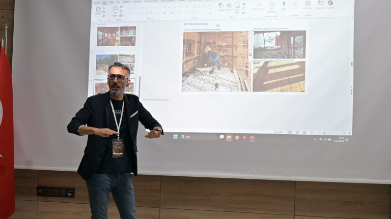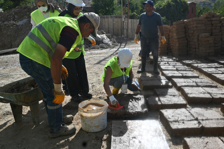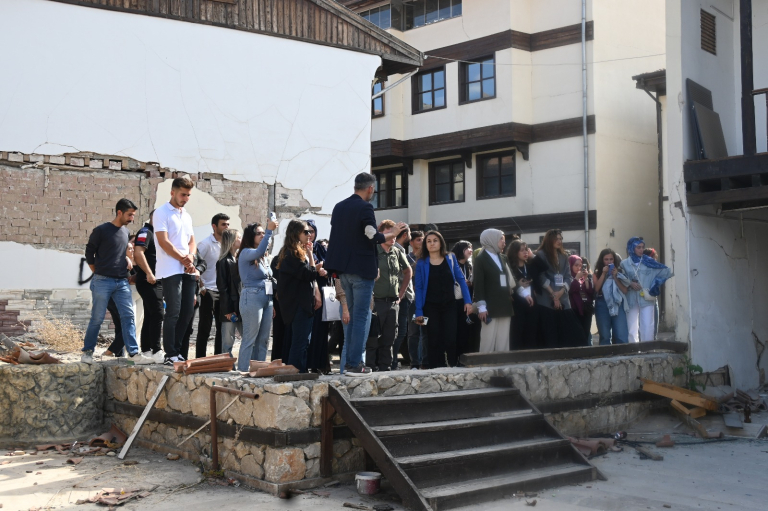 Participants organized a technical tour to Lezzet Street in Yeşilyurt Gündüzbey Neighborhood to observe traditional adobe building examples on site. Here, in a building undergoing restoration, adobe block production was carried out using traditional methods. The event attracted particular interest from students in the Interior Architecture and Cultural Heritage Preservation and Restoration departments. Certificates of participation were presented to students who attended the entire program.