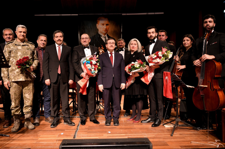 Within the scope of the 100th anniversary of the founding of our Republic, the “Exhibition of the Century” curated by Assoc. Prof. Dr. Tülay Özkul, a faculty member of the Department of Painting, Faculty of Art, Design and Architecture, and the “100th Anniversary of our Republic Concert” hosted by İnönü University Turgut Özal Congress and Culture Center, hosted by İnönü University, with the joint orchestra and choirs of the Faculty of Art, Design and Architecture, Department of Music and İnönü University Music Teaching Program. The exhibition featuring the works of local and foreign artists attracted great attention. The opening of the exhibition was held in the presence of Rector Prof. Dr. Recep Bentli, Rector Prof. Dr. Ahmet Kızılay. After the exhibition, the concert was held in the conference hall. The concert, conducted by Prof. Dr. Ersan Çiftci, was followed with great interest. Rector Prof. Dr. Recep Bentli, İnönü University Rector Ahmet Kızılay, 2nd Army Chief of Staff Brigadier General Mustafa Er, Deputy Mayor of Metropolitan Municipality Fikret Vurucu, Battalgazi Deputy Mayor İsmet Sarıgül, academicians, administrative staff and students attended the program. The exhibition will be on display at Inonu University Turgut Özal Congress and Culture Center until January 2, 2024.