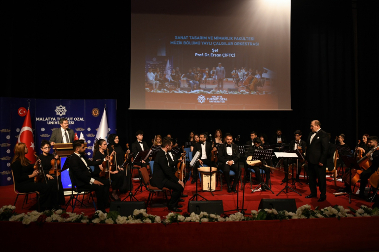 Malatya Turgut Özal University Faculty of Art, Design and Architecture, Department of Music String Orchestra organized a concert at Battalgazi Conference Hall. Faculty Dean Prof. Dr. Ersan Çiftci was the conductor of the orchestra and the concert was attended by rector Prof. Dr. Recep Bentli, Vice Rector Prof. Dr. Orhan Gündüz, Secretary General Assoc. Dr. Ahmet Selim Özkan and Malatya Provincial Culture and Tourism Director Yener Oba. The concert attracted great interest from the academic and administrative staff and students of the university. The works performed with violin, viola, cello, flute, piano, percussion and baglama gave the audience pleasant moments.