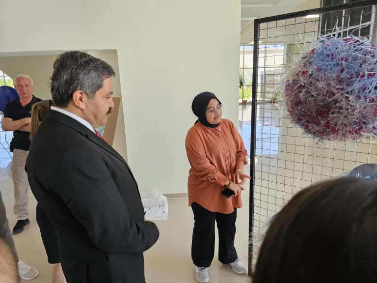 MALATYA (AA) - Malatya Turgut Özal University Faculty of Art, Design and Architecture, Department of Painting students exhibited their works made from recycled materials. At the exhibition opened in the faculty building, the students gave information to the participants about their works such as “centipede”, “tree mushroom” and “atom, the building block of matter” made from paper and plastic waste. Faculty of Art, Design and Architecture, Department of Painting Lecturer Assoc. Prof. Dr. Döndü Tülay Özkul told AA correspondent that they admitted students to the painting department for the first time this year. Stating that they have carpet, pattern, printing and paper making workshops, Özkul said, “In addition, we have basic art education, interdisciplinary art technology courses. We have created three communities within our faculty. We organize exhibitions after the work done with these communities. Communities and our courses support each other. We make different productions together. These communities use their artistic production as a tool by creating awareness in the field by making nature-friendly productions.” Stating that they aim to raise awareness, Özkul said: “We reinterpret a discarded object, sometimes a piece of paper that has completed its task, in a contemporary language and recycle it. At the same time, thanks to the carpet-rug workshop, one of the traditional Turkish handicrafts that are about to be forgotten, we realize contemporary productions that take their roots from tradition.” The department, which has been operating for only one year, offers a different perspective.