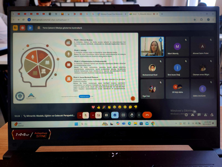 Our students showed great interest in the online seminar event organized for the first time by the Department of Interior Architecture. “Interior Architecture: Profession, Education and Future Perspectives”, Dr. Lecturer Yaren Şekerci from Antalya Bilim University, Department of Interior Architecture and Environmental Design provided important information about the current status of interior architecture, education processes and possible future developments. Prof. Dr. Yaren Şekerci provided important information about the current status of interior architecture, education processes and possible future developments. The event was completed with a question and answer session.