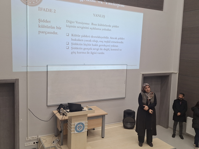 In partnership with the Faculty of Art, Design and Architecture of our University and the Women and Family Studies Application and Research Center, an information training titled “Combating Violence Against Women” was held. The event attracted great interest from the faculty members and students of the Faculty of Art, Design and Architecture. During the event, important information about combating domestic and violence against women, ŞÖNİM services and legal regulations were presented. The event was completed with a question and answer session.