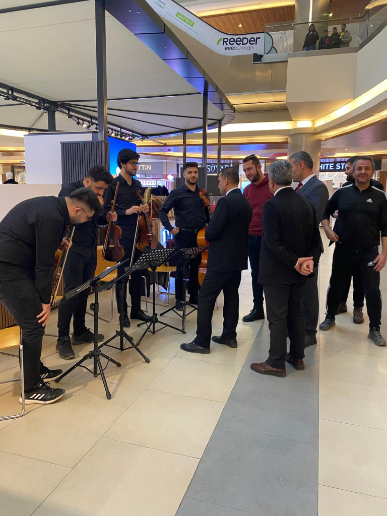 In the “Free Palestine” events organized with the cooperation of Malatya Governorship, Yeşilyurt District Directorate of National Education and our Faculty, a string quartet consisting of the students of the music department of our Faculty performed a concert. The program prepared by lecturer Özgür Sakalıuzun was held on 14.01.2025 at the opening of the painting exhibition at Malatyapark Shopping Mall.