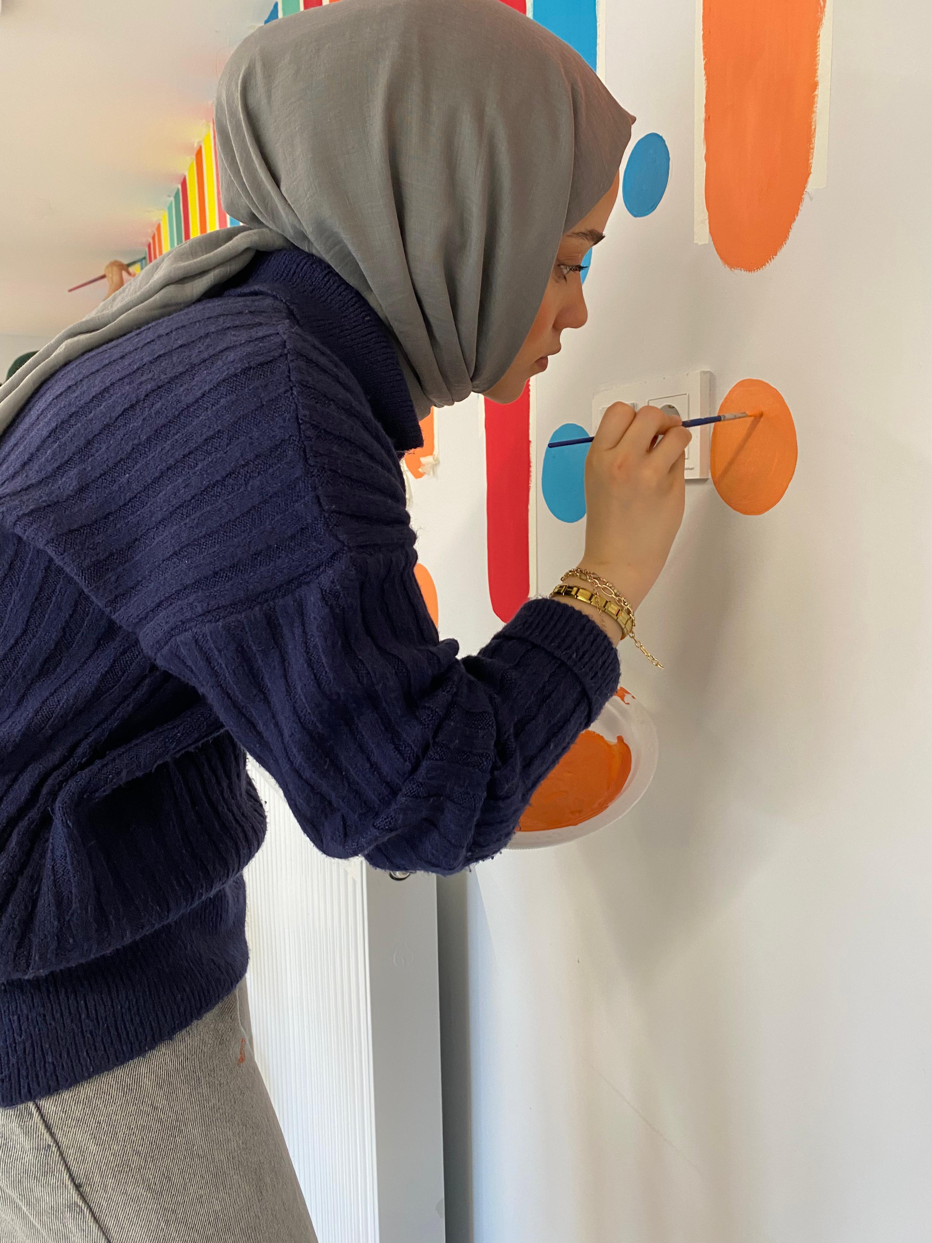 Resim Topluluğu tarafından yürütülen “Tasarlanan Görselleri Duvara Aktarıp Boyama Gönüllülük Projesi” ...