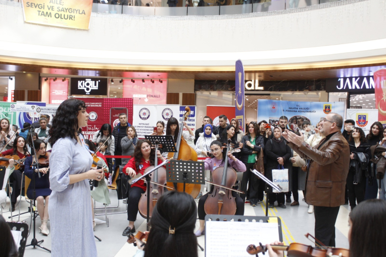 MTÜ Sanat Tasarım ve Mimarlık Fakültesi Müzik Bölümü ile Kadın ve Aile Çalışmaları Uygulama ve Araştırma Merkezi tarafından organize edilen, Malatya ŞÖNİM Müdürlüğü işbirliğiyle düzenlen Kadınlar Koro ve Orkestrası konseri, 8 Mart 2025 tarihinde Malatya Park AVM Gösteri Alanı’nda sanatseverlerle buluştu."Kadınların Sesinden, Kadınların Telinden" mottosuyla gerçekleştirilen etkinliğin Orkestra ve koronun şefliğini STMF Müzik Bölümü Arş. Gör. İrem Polat Açık üstlenirken, sanat yönetmenliğini ise STMF Dekanı Prof. Dr. Ersan Çiftci yaptı. Konserde sahne alan koro ve orkestra, kadın temalı eserleri seslendirerek izleyicilere unutulmaz anlar yaşattı. Konserin açılışı, koronun İstiklal Marşı’nı çalması ve söylemesiyle gerçekleşti. Konserde sırasıyla “Stars of The Summer Nights”, “German Dance”, “Hanımın Çiftliği”, “Kuş Sesleri Ovalara Yayılır”, Solist Miray Yağlıcı’nın seslendirdiği “İnsan İnsan”, Solist Duygu Otlu’nun seslendirdiği “Ünzile”, Solist Zilan Özkırtay’ın seslendirdiği “Lal”, Solist Zuhal Çelik’in seslendirdiği “Unutmamalı”, Solist Dr. Öğr. Üyesi Bilgehan Aycan’ın seslendirdiği “Gel Barışalım Artık”, Solist Bahar Doğan’ın seslendirdiği “Sana Bir Şey Olmasın”, Solist Arya Önem Sayın’ın seslendirdiği “Başıma Gelenler” ve Solist Arş. Gör. İrem Polat Açık’ın seslendirdiği“ Zor Kadın” şarkıları yer aldı.