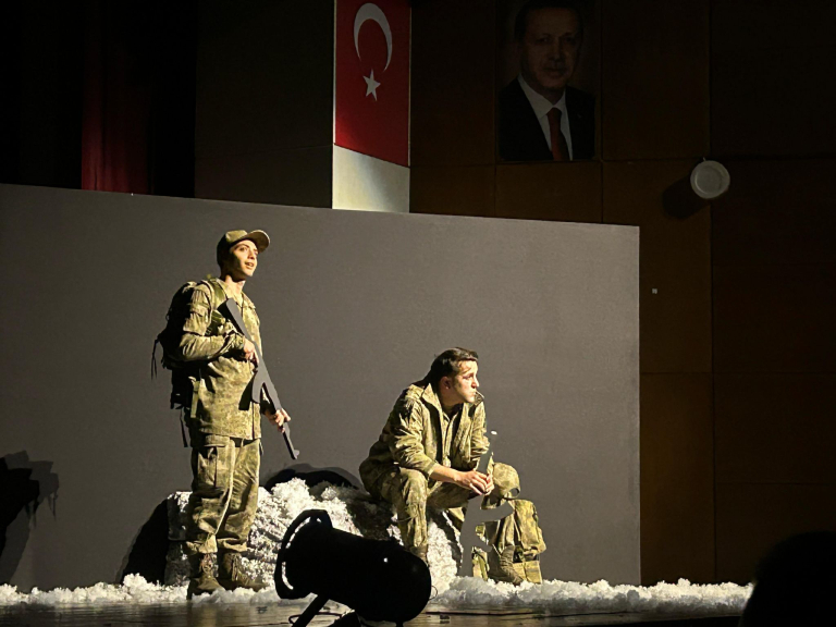 Oyunun yazarlığını M. Akif Güzel’in üstlendiği, yönetmenliğini STMF Sahne Sanatları Bölümü Arş. Gör. Sündüz Adilak’ın yaptığı oyunda Can Zengin, Fatma Şahin, Filiz Kamış, M. Akif Güzel ve Yalçın Yedek olmak üzere geniş oyuncu kadrosu yer aldı. Özellikle oyunda hem kendi hikâyesini anlatan hem de sahne alan Malatya Gazisi Yalçın Yedek, izleyicilerden büyük alkış aldı. Reji asistanlığını Sıla Çiçek’in, afiş tasarımını ise Enes Uluçay’ın yaptığı yapım; sahne kurgusu, müzikleri ve ışık kullanımıyla profesyonel bir performans sundu. Yaklaşık bir saat süren ve 13 yaş üstü izleyicilere hitap eden oyun, salonu dolduran seyircilerden tam not aldı. Gerçek bir kahramanlık hikâyesini merkezine alan oyun, sadece askeri bir operasyonun anlatımıyla sınırlı kalmayarak, insan ruhunun dayanıklılığına, vatan sevgisine ve fedakârlığın anlamına da ışık tuttu.