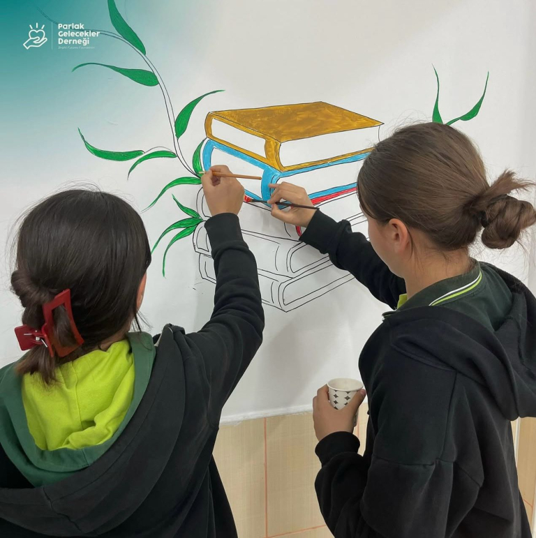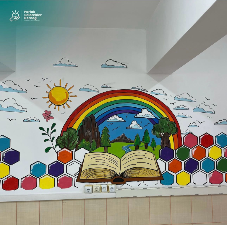 Hayatlarındaki ilk duvar resmi deneyimini hayata geçiren öğrencilerimiz, çizimden renklendirmeye kadar sürecin her aşamasını birlikte yürüterek seçtikleri figürlerle de çocukların hayal gücünü besleyecek şekilde tasarladı.