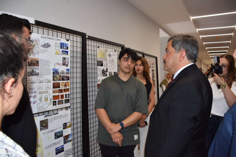 Katılımcılar, öğrencilerin ilk yıl projeleriyle sergiledikleri yaratıcı yaklaşımlara ilgi göstererek öğrencilerle birebir iletişim kurdu ve proje süreçleri hakkında bilgi aldı.