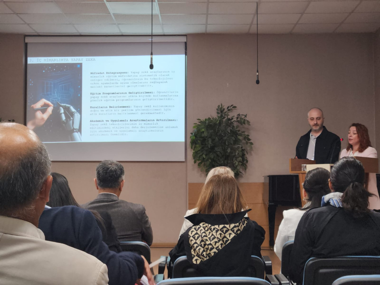 Türkiye genelindeki İç Mimarlık bölümlerinin temsilcilerini bir araya getiren toplantıda, alanın güncel sorunları ve gelişim alanları ele alındı. Etkinlik kapsamında eşzamanlı olarak düzenlenen çalıştay oturumlarında “İç Mimarlık Eğitiminde Yapay Zekâ Uygulamaları ve Dijital Tasarım Araçları”, “Akreditasyon Ölçütleri” ile “Lisansüstü Programlara İlişkin Güncel Yaklaşımlar” başlıkları tartışıldı.