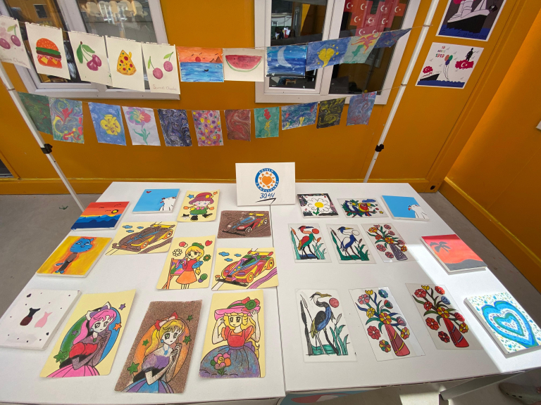 3. Dönem ÜNİDES Projesi kapsamında düzenlenen “Görüntüden Geleceğe” adlı sergi, 31 Mayıs Cumartesi günü saat 13.00’te Malet-2 TEGV Shell Öğrenim Birimi’nde gerçekleştirildi. Topluluk üyeleri, dört hafta boyunca süren proje kapsamında çocuklara farklı görsel sanat alanlarında atölye çalışmaları gerçekleştirdi. Proje, konteyner kentte yaşayan ve TEGV’e kayıtlı ortaokul öğrencilerine yönelik olarak planlandı. Dört hafta boyunca çocuklara resim, kum boyama, vitray, sulu boya, karakalem, dijital fotoğrafçılık gibi sanat alanlarının yanı sıra Adobe Illustrator ve MS Office programlarında da uygulamalı eğitimler verilerek yaratıcılıklarının geliştirilmesi hedeflendi. Sergide dijital fotoğraf, kum boyama, vitray, tuval, sulu boya, ebru ve karakalem gibi çeşitli sanat dallarına ait eserlerin yanı sıra çocukların Adobe Illustrator programında öğrendikleriyle hazırladıkları dijital tasarımlar da yer aldı.