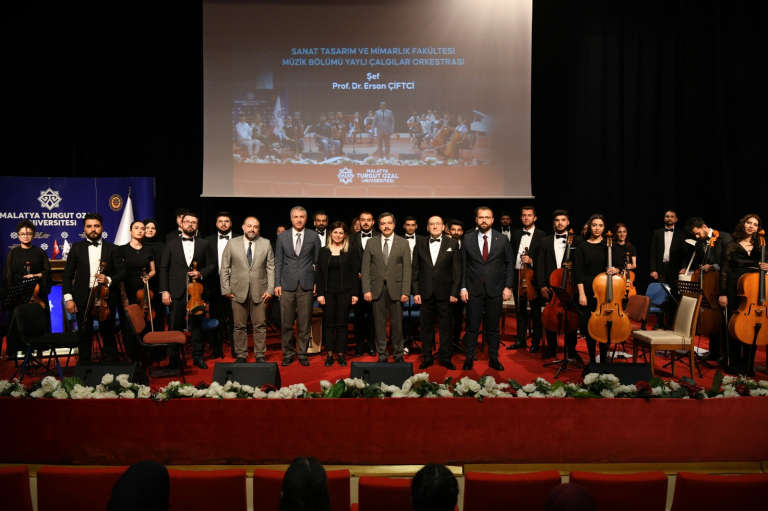 Malatya Turgut Özal Üniversitesi Sanat Tasarım ve Mimarlık Fakültesi Müzik Bölümü Yaylı Çalgılar Orkestrası tarafından Battalgazi Konferans Salonu’nda konser düzenlendi. Fakülte Dekanı Prof. Dr. Ersan Çiftci’nin orkestra şefi olarak yer aldığı konsere rektör Prof. Dr. Recep Bentli, Rektör Yardımcısı Prof. Dr. Orhan Gündüz, Genel Sekreter Doç. Dr. Ahmet Selim Özkan ile Malatya İl Kültür ve Turizm Müdürü Yener Oba katıldı. Konser, üniversitenin akademik ve idari personeli ile öğrencilerden yoğun ilgi gördü. Keman, viyola, viyolonsel, flüt, piyano, perküsyon ve bağlama eşliğinde icra edilen eserler dinleyicilere keyifli anlar yaşattı.