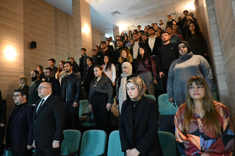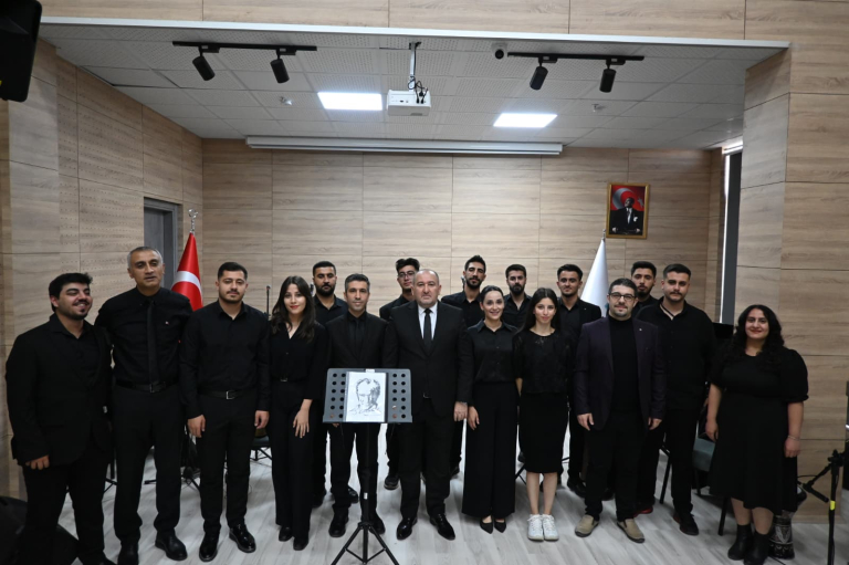 Fakültemiz, 10 Kasım Atatürk’ü Anma Günü dolayısıyla anlamlı bir etkinliğe ev sahipliği yaptı. “Notadan Ata’ya… Sanatla Saygı” temalı Atatürk’ü Anma Konseri, 10 Kasım 2025 tarihinde saat 09.05’te Kenan Işık Amfisinde gerçekleştirildi. Programa Fakülte Dekanı Prof. Dr. Ersan Çiftci, Dekan Yardımcıları Doç. Dr. Ebru Doğan, Doç. Dr. Ferdi Karaönçel, akademik ve idari personel ile öğrenciler katıldı.