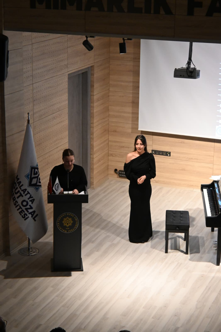 Fakültemiz Müzik Bölümü tarafından düzenlenen Piyano Dinletisi, 24 Aralık Çarşamba günü Kenan Işık Amfisi’nde gerçekleştirildi. Sanat yönetmenliğini Doç. Dr. Ferdi Karaönçel’in üstlendiği dinletide, Müzik Bölümü 4. Sınıf öğrencisi piyanist Ayşe Güven sahne aldı. Dinletiye; Sanat, Tasarım ve Mimarlık Fakültesi Dekanı Prof. Dr. Ersan Çiftci, dekan yardımcıları Doç. Dr. Ebru Doğan ve Doç. Dr. Ferdi Karaönçel, fakülte sekreteri ve aynı zamanda Müzik Bölümü öğretim elemanı Öğr. Gör. Harun Barış ile akademik ve idari personel ile öğrenciler katıldı.