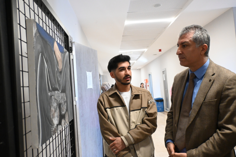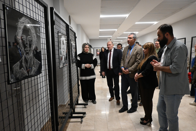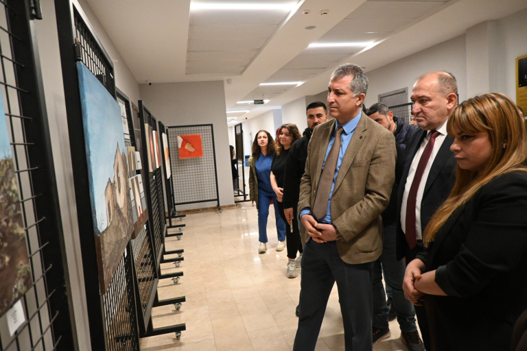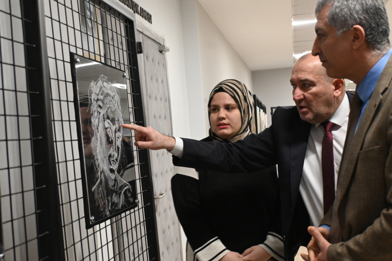 Resim Bölümü öğrencilerinin çalışmalarından oluşan “İzler” adlı karma resim sergisi, 9 Mart Pazartesi günü fakültemiz 1. kat fuaye alanında düzenlenen açılış programıyla sanatseverlerin ziyaretine açıldı. Açılış programına Malatya Turgut Özal Üniversitesi Rektör Yardımcısı Prof. Dr. Orhan Gündüz, STMF Dekanı Prof. Dr. Ersan Çiftci, Dekan Yardımcıları Doç. Dr. Ebru Doğan ve Doç. Dr. Ferdi Karaönçel, Resim Bölüm Başkanı Doç. Dr. Döndü Tülay Özkul ile akademik ve idari personel ile öğrenciler katıldı.