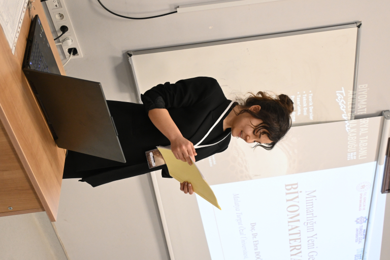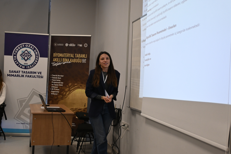 Projenin ilk günü olan 2 Mart 2026 tarihinde, İç Mimarlık öğrencilerine yönelik teorik dersler düzenlendi. Programın açılışında İç Mimarlık Bölümü öğretim üyesi Dr. Öğr. Üyesi Burcu Yıldırım, projenin kapsamına ilişkin bir açılış konuşması gerçekleştirdi. Ardından İç Mimarlık Bölüm Başkanı aynı zamanda İç Mimarlık Topluluğu akademik danışmanı Doç. Dr. Ebru Doğan, “Mimarlığın Yeni Genetiği: Biyomateryaller” başlıklı sunumunda biyomateryal malzemelerin mimaride kullanım alanları hakkında bilgi verdi. Darende Bekir Ilıcak Meslek Yüksekokulu İnşaat Bölümü Yeşil ve Ekolojik Bina Teknikerliği Programı öğretim elemanı Öğr. Gör. Nurten Gökçek ise “Yaşayan Mekânların Tasarım Kodu: Biyofilik Tasarım” başlıklı konuşmasında biyofilik tasarım ilkeleri ile mimari tasarım ve uygulama süreçleri arasındaki ilişkiyi ele aldı.