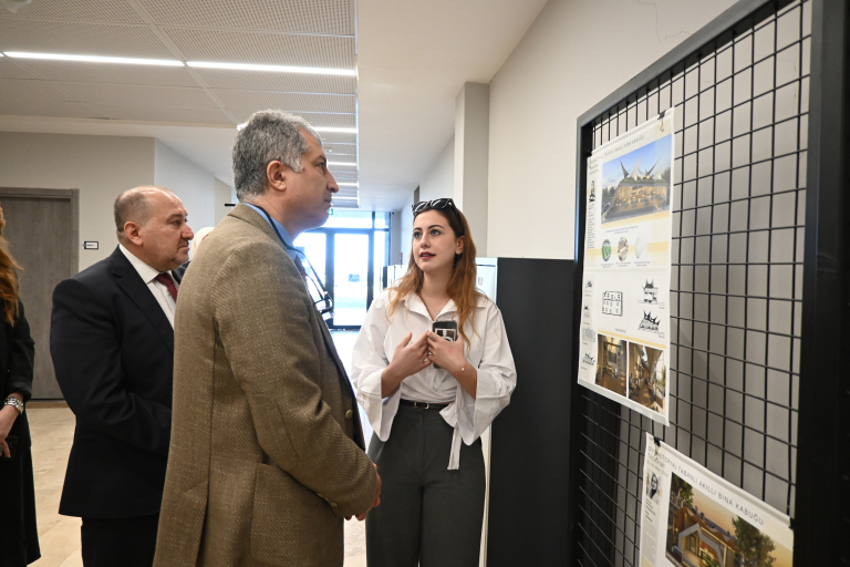 Sergide İç Mimarlık lisans öğrencilerinin tasarımları ile süreçte üretilen üç boyutlu prototipler ziyaretçilerin beğenisine sunuldu. Üniversite üst yönetimi ve paydaşların oylamasına sunulan projeler arasından en fazla oy alan çalışmanın sahibi Muhammed Kızıl’a plaketi takdim edildi.