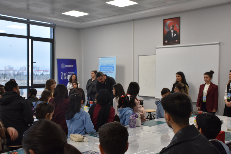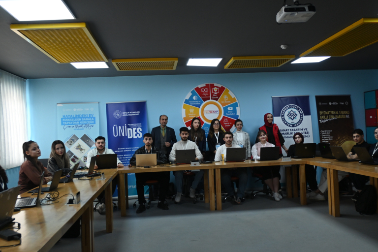 Fakültemiz İç Mimarlık Bölümü Tasarım ve Teknoloji Topluluğu tarafından yürütülen “Hayalimdeki Ev: Fizikselden Sanala, Yapaydan Gerçeğe Çizim ve Maket Atölyesi” başlıklı 5. ÜNİDES projesi, 4-9 Mart 2026 tarihleri arasında gerçekleştirildi. Gençlik ve Spor Bakanlığı tarafından desteklenen proje kapsamında çocukların hayal dünyasını tasarım ve teknoloji ile buluşturmayı amaçlayan çizim, dijital modelleme ve üç boyutlu üretim süreçlerini içeren çeşitli etkinlikler düzenlendi. Proje, farklı günlerde gerçekleştirilen atölye çalışmaları ve sergi etkinliğiyle tamamlandı.