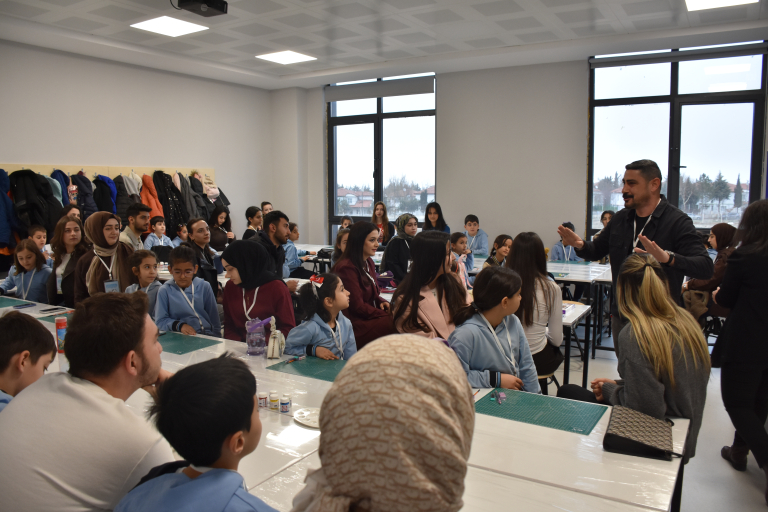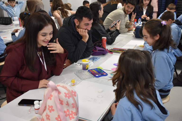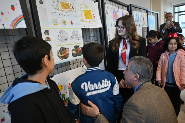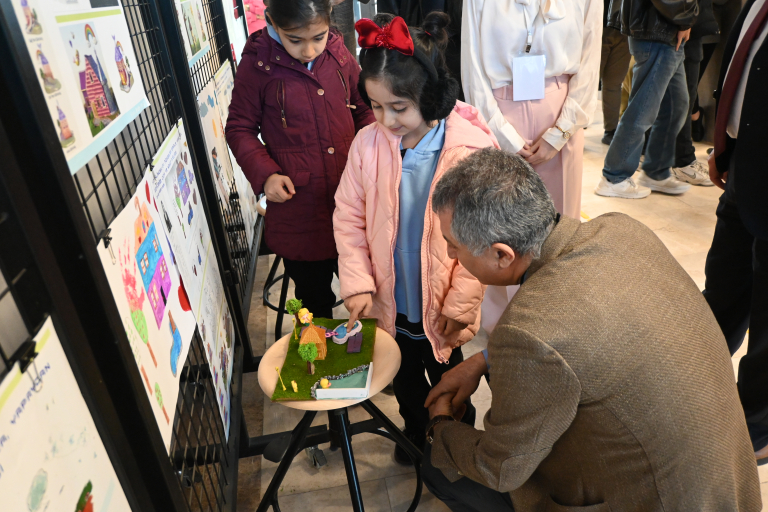 Sergide ilkokul öğrencilerinin çizimleri ile İç Mimarlık lisans öğrencilerinin bu çizimleri temel alarak geliştirdiği tasarımlar ve süreçte üretilen üç boyutlu prototipler ziyaretçilerin beğenisine sunuldu.