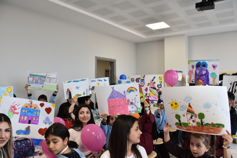 Projenin ilk günü olan 4 Mart 2026 tarihinde, Kemal Özalper İlkokulu 3. sınıf öğrencileri ile İç Mimarlık Bölümü lisans öğrencilerinin katılımıyla bir çizim atölyesi gerçekleştirildi. Öğretmen Sezen Güngör eşliğinde atölyeye katılan 32 ilkokul öğrencisi, İç Mimarlık lisans öğrencileri ile eşleştirildi. Öğr. Gör. Ahmet Abuzeroğlu’nun yürütücülüğünde, Doç. Dr. Ebru Doğan ve Dr. Öğr. Üyesi Burcu Yıldırım’ın katılımıyla gerçekleştirilen atölyede ilkokul öğrencileri hayallerindeki evi özgürce resmetti. Çizim sürecinde sulu boya, kuru boya, guaj boya ve marker gibi çeşitli teknikler kullanılarak çocukların yaratıcılıklarını özgürce ifade etmeleri sağlandı.