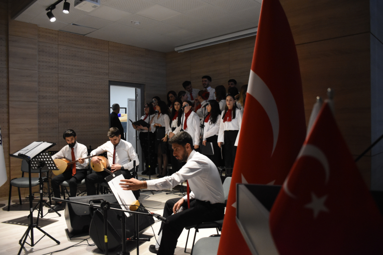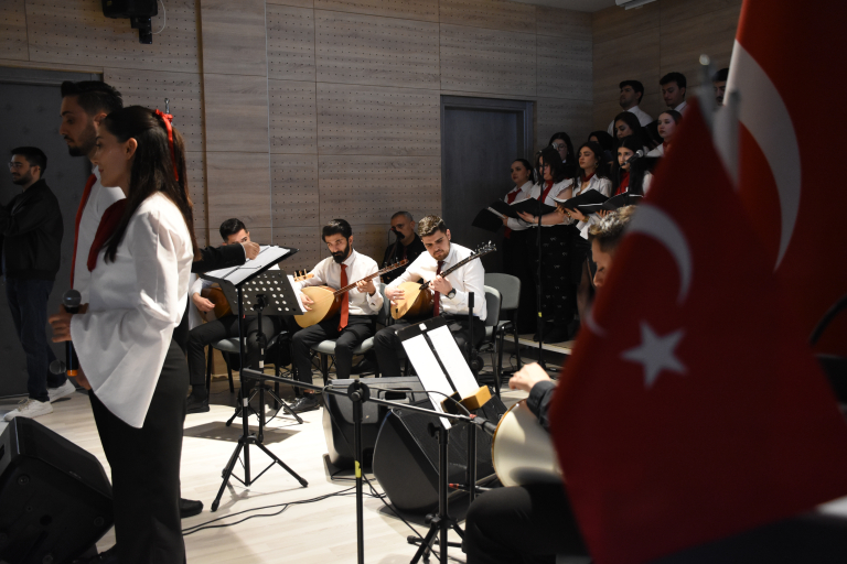 Fakültemiz Müzik Bölümü tarafından 18 Mart Çanakkale Zaferi ve Şehitleri Anma Günü kapsamında düzenlenen “Asker ve Kahramanlık Türkü ve Marşları Konseri”, 17 Mart 2026 tarihinde Kenan Işık Amfisi’nde gerçekleştirildi. Etkinlikte, Müzik Bölümü Korosu ile THM Çalgı Topluluğu tarafından seslendirilen eserlerle Çanakkale Zaferi’nin tarihsel anlamı ve milli hafızadaki yeri müzik aracılığıyla dinleyicilere aktarıldı.