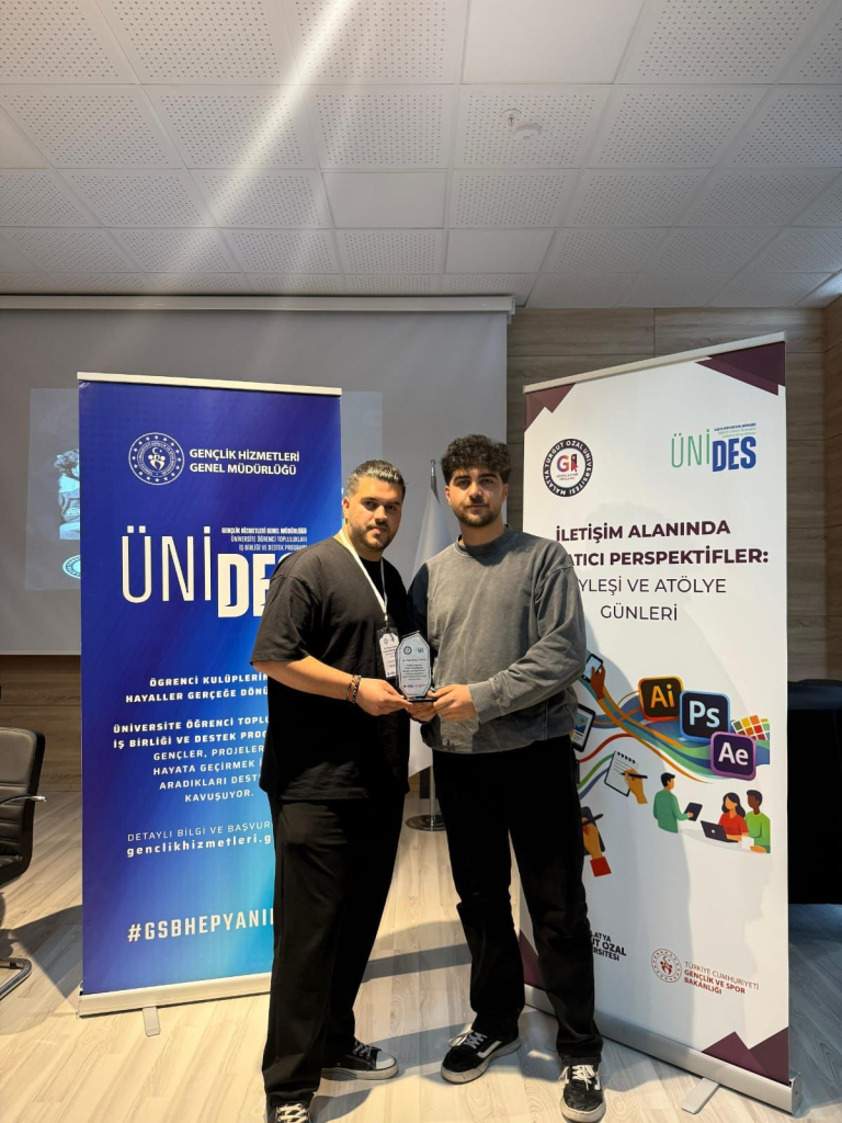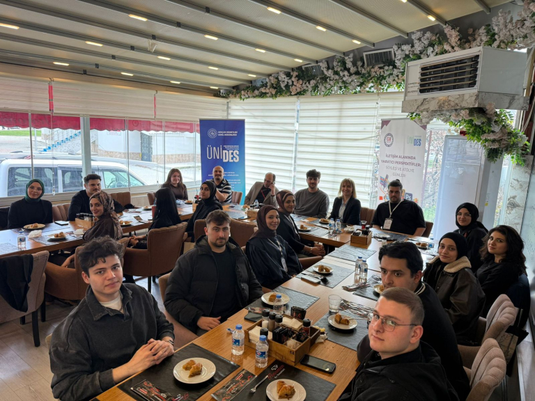 Görsel İletişim Topluluğu tarafından yürütülen “İletişim Alanında Yaratıcı Perspektifler: Söyleşi ve Atölye Günleri” başlıklı 5. ÜNİDES projesi, 2-3 Nisan 2026 tarihlerinde gerçekleştirilen etkinliklerle tamamlandı. Proje kapsamında öğrenciler, grafik tasarım ve dijital habercilik alanlarında sektör temsilcileriyle bir araya gelerek hem kuramsal bilgilerini uygulamayla pekiştirme hem de mesleki deneyim kazanma fırsatı buldu. İki gün süren proje etkinlikleri, öğrencilerin mesleki gelişimlerinin yanı sıra ekip çalışması, organizasyon ve üretim becerilerine de katkı sundu.