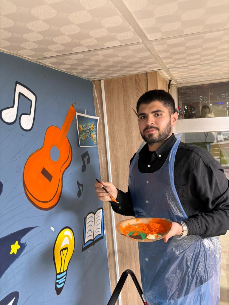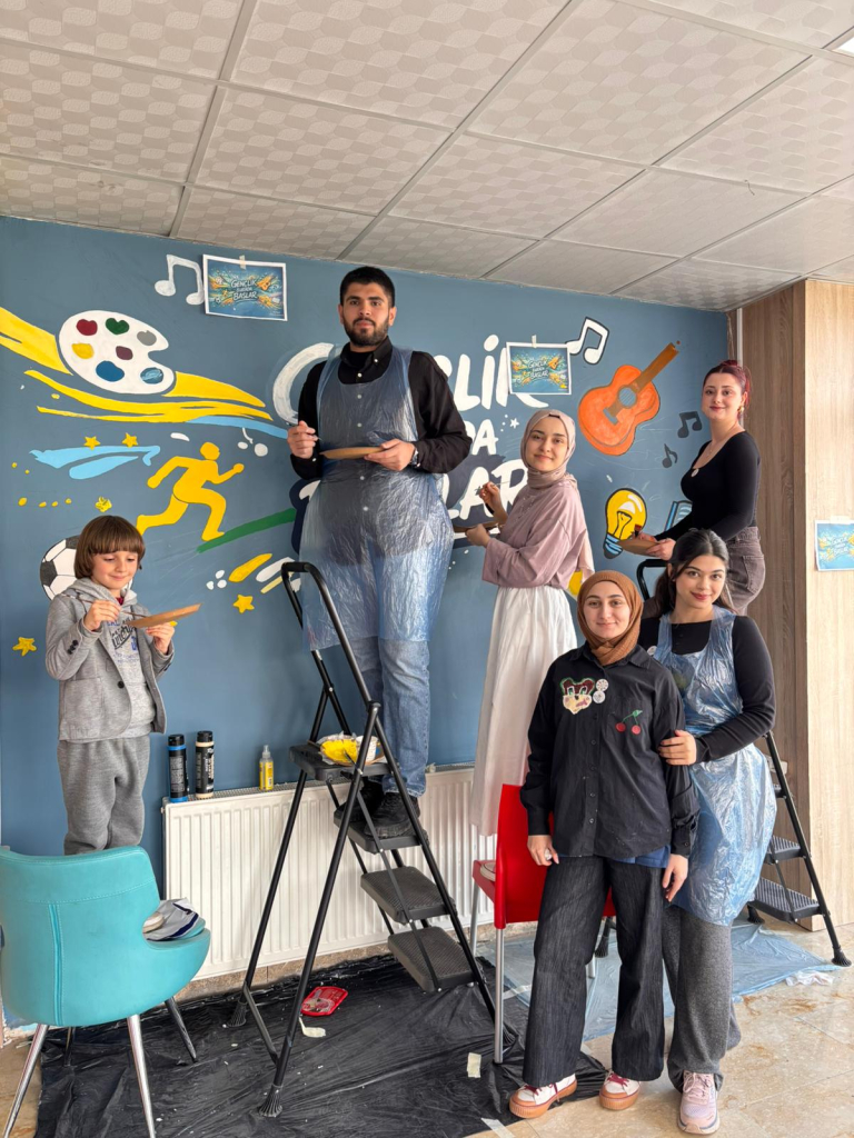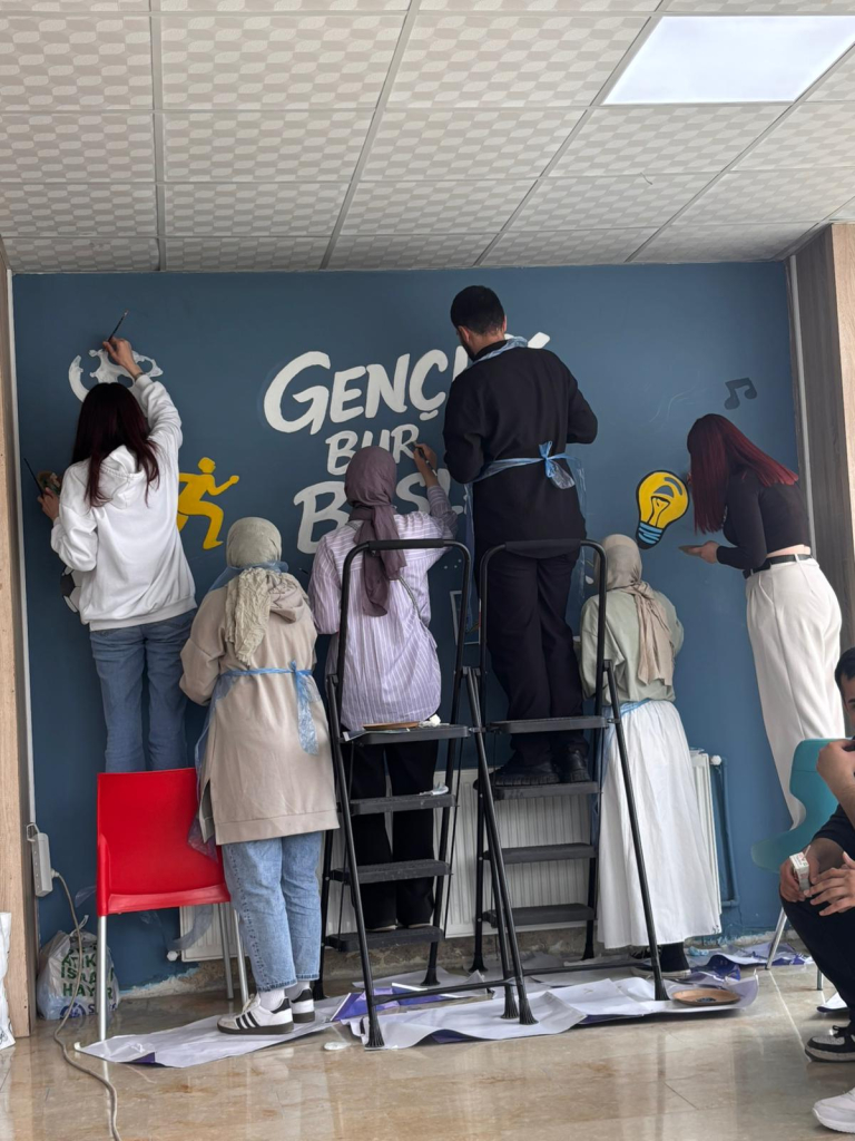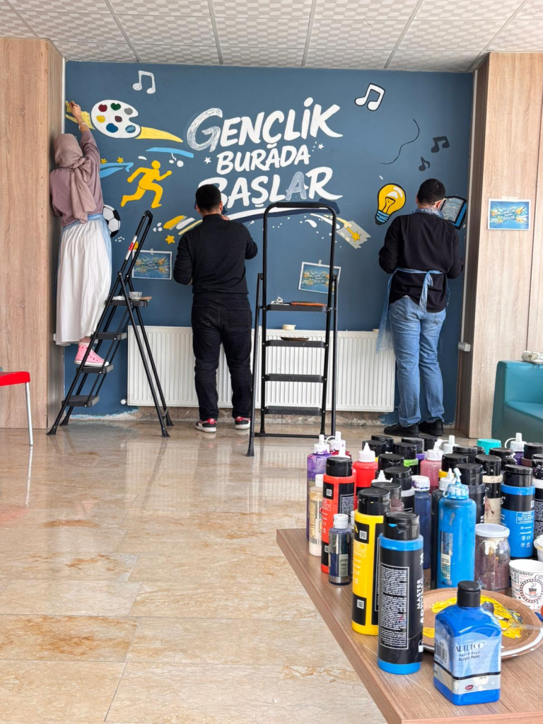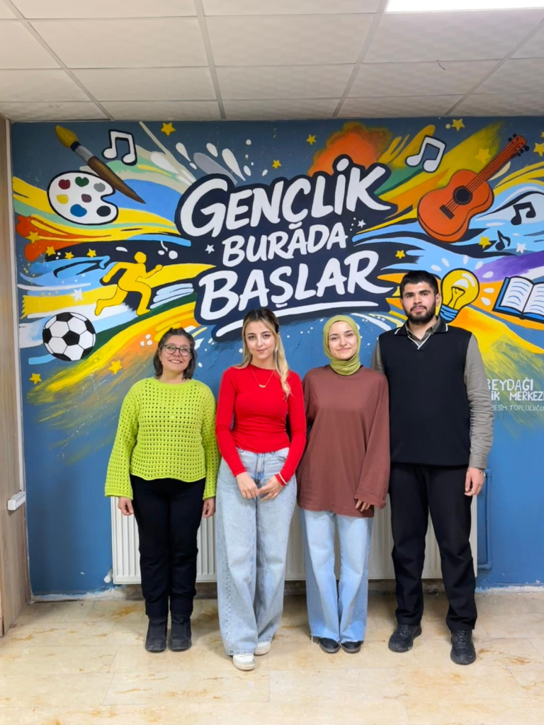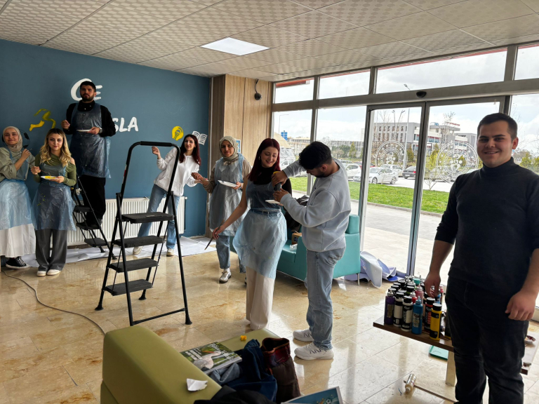 Topluluğun akademik danışmanı Dr. Öğr. Üyesi Selcan Kalın rehberliğinde gerçekleştirilen etkinlikte öğrenciler hem sanatsal üretim süreçlerine aktif olarak katıldı hem de gönüllülük temelli sosyal sorumluluk çalışmasında yer aldı. Beydağı Gençlik Merkezi Gençlik Lideri Zeynep Özlük’ün de destek verdiği uygulama sürecinde öğrenciler, tasarladıkları görselleri duvara aktararak boyama çalışmaları yaptı.