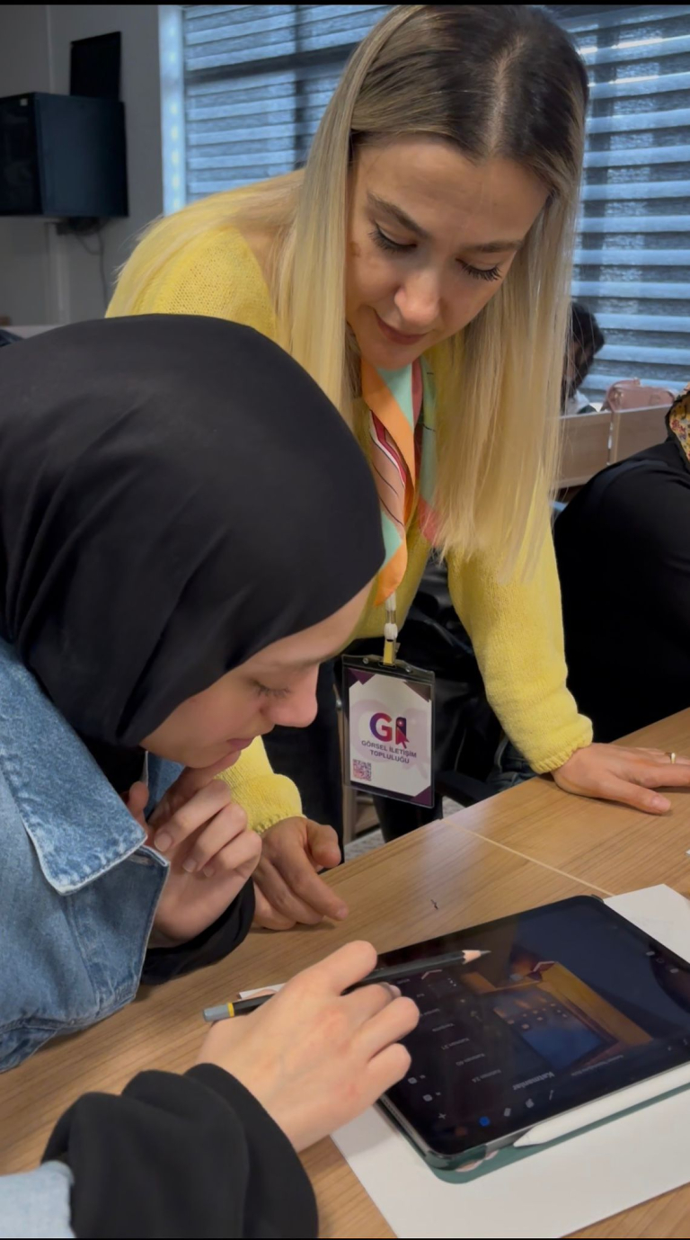 Etkinliğin ikinci gününde ise dijital çizim çalışmalarına geçildi. Öğrenciler, geleneksel çizimden dijital üretim sürecine uzanan aşamaları deneyimleyerek farklı teknikleri uygulama imkânı buldu. Böylece workshop, hem temel çizim pratiğini geliştirmek hem de güncel dijital üretim araçlarını tanımak açısından verimli bir öğrenme ortamı sundu.