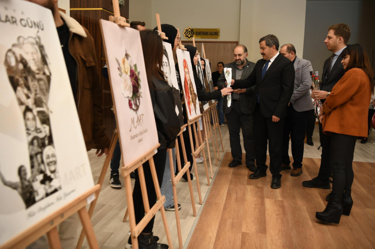 8 Mart Dünya Kadınlar Günü dolayısıyla düzenlenen resim sergisi, üniversitemizde büyük bir ilgiyle karşılandı. Sergi, Doç. Dr. Tülay ÖZKUL ve öğrencileri tarafından titizlikle hazırlandı. Serginin açılışına üniversitemizin rektörü Prof. Dr. Recep BENTLİ ve beraberindeki heyet de katıldı. Sergide, kadınların toplumsal rollerini ve yaşam mücadelesini yansıtan çeşitli eserler yer aldı. Katılımcılar, sanatın gücünden yararlanarak kadınların toplumdaki önemine ve katkılarına dikkat çekti. Rektör Prof. Dr. Recep BENTLİ, serginin kadın hakları ve eşitlik konularında farkındalık yaratma açısından büyük bir adım olduğunu belirtti ve organizasyonun başarısını takdir etti. Sergi, ziyaretçilere sanat aracılığıyla güçlü bir mesaj vermeyi ve kadınların toplumsal alandaki yerini vurgulamayı başardı. Etkinlik, üniversitemizin sanata ve sosyal konulara verdiği önemin bir göstergesi olarak değerlendirilirken, 8 Mart'ın anlamını derinleştiren anlamlı bir deneyim sundu.