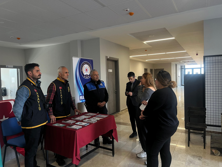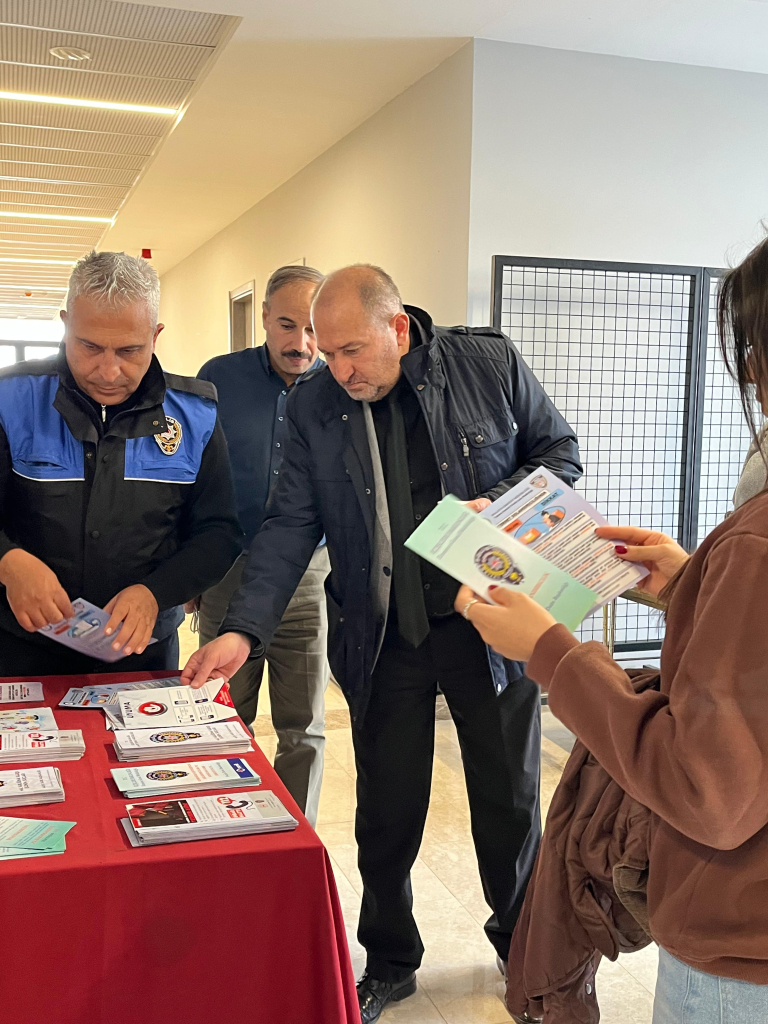 Malatya Emniyet Müdürlüğü Asayiş Şube Müdürlüğü Personelleri tarafından Fakültemiz binasında açılan bilgilendirme standında öğrencilerimize dolandırıcılık yöntemleri ve dolandırıcılara karşı alınacak önlemler hakkında sözlü bilgilendirmeler yapılarak bilgi broşürleri dağıtıldı. Fakültemiz dekanı Prof. Dr. Ersan Çiftci Malatya Emniyet Müdürlüğü yekililerine bilgilendirmeleri için teşekkür etti.